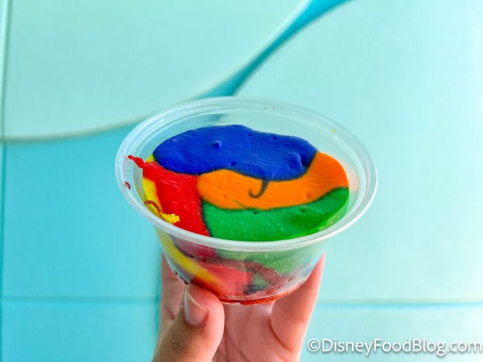 Speaking of the food court, no Pop Century expert would stay at the hotel without enjoying its trademark tie-dye cheesecake dessert at least once!