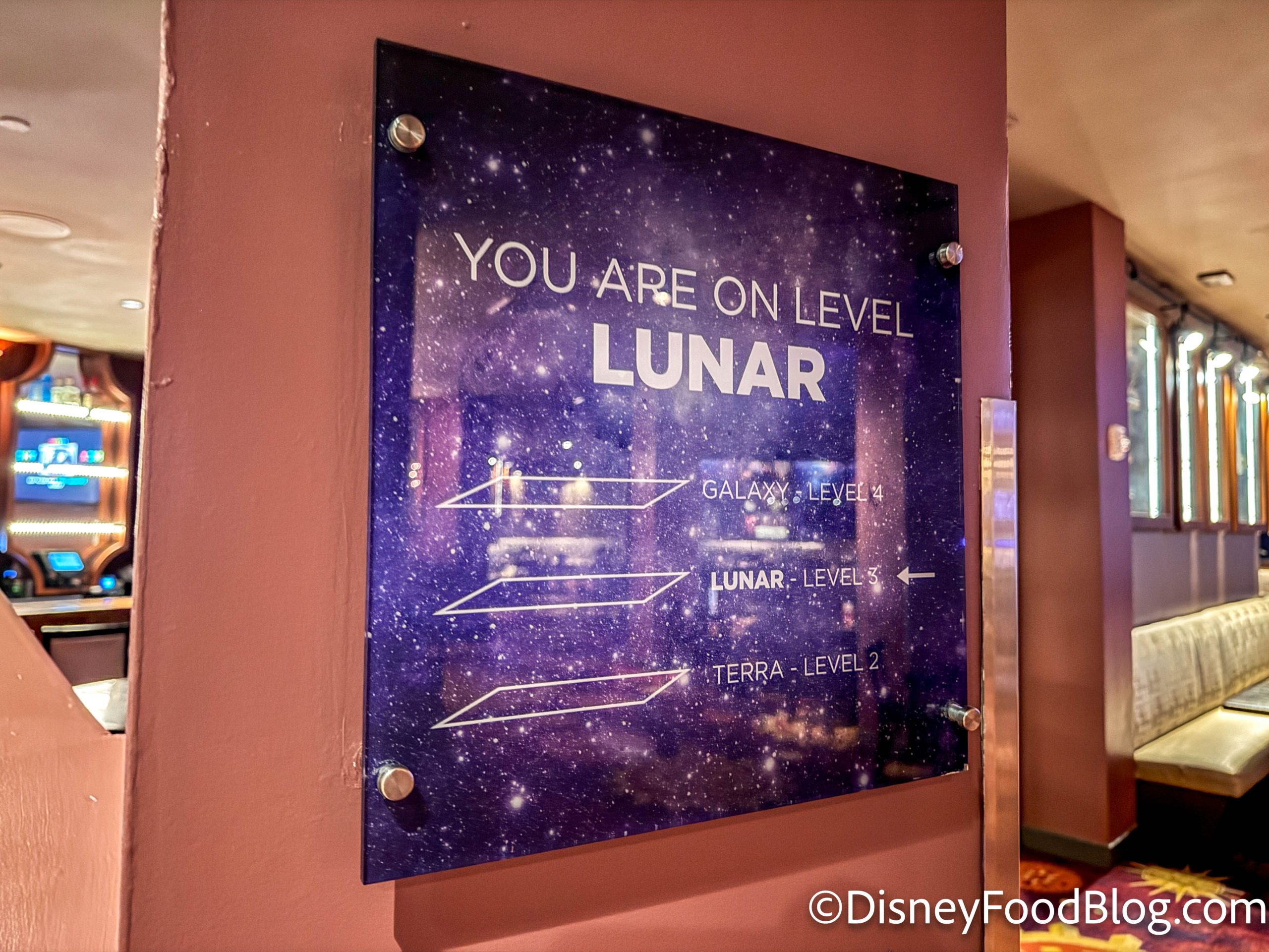 Speaking of those upper floors, there are three floors in total! You can visit the upper floors even if you’re not dining up there, and each floor has its own theme — terra, lunar, and galaxy.