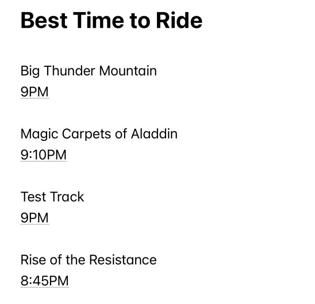 I have a long list of the best times to ride all kinds of Disney World attractions. Here’s a peek at a few.