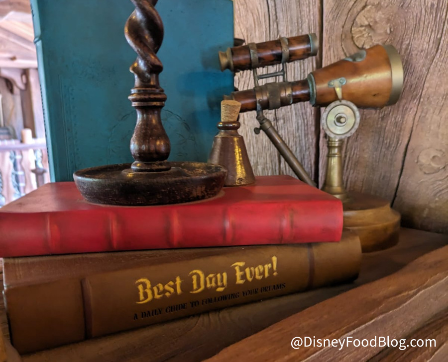 We spotted a map of Neverland, the Jolly Roger Crew Log, and the infamous hook!