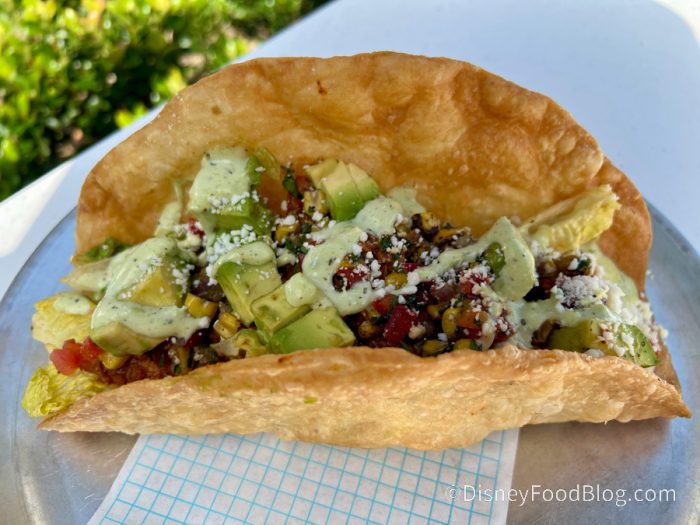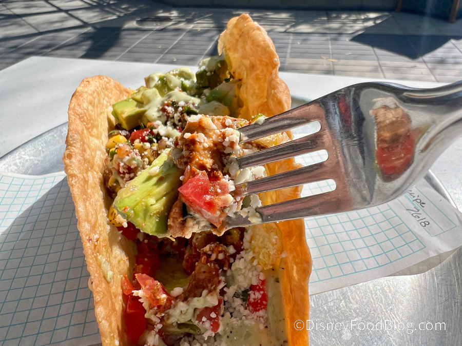 We had a lot of feelings about this salad. All in all, the flavor was very nice. The ranch had a citrus zest and was a bit spicier than the typical Disney heat (IYKYK) thanks to the chipotle, and the corn was cooked perfectly. The cotija provided cheesy bites, but we could’ve used more, which ended up being a theme of the salad.