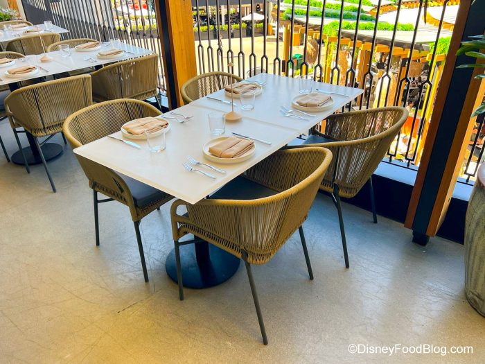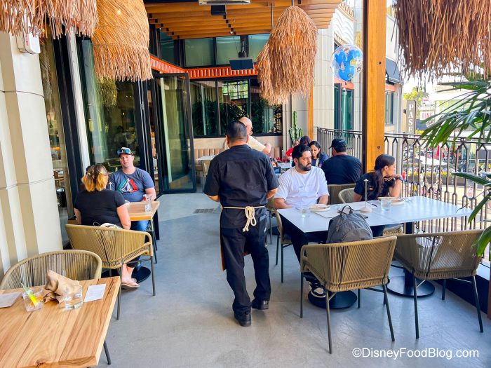 - You want to enjoy a table service restaurant experience. This restaurant is so chill and we love the vibe. So if you’re wanting to stop for a while and enjoy a meal, here’s your chance. Plus you can sit indoors or outdoors.