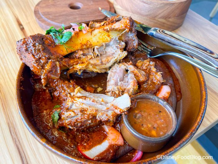 For our main entree, we picked the Mama’s Cochinita Pibil made with guerrero-style pork shank, black bean pureé, pickled red onion, habanero salsa, and corn tortillas for $38. This pork was so tender, juicy, and full of flavor. Although it’s served with a steak knife, we didn’t need it — it just fell right off the bone. It was slow-cooked with orange and chili, so you got those hints of sweet and spicy flavors.