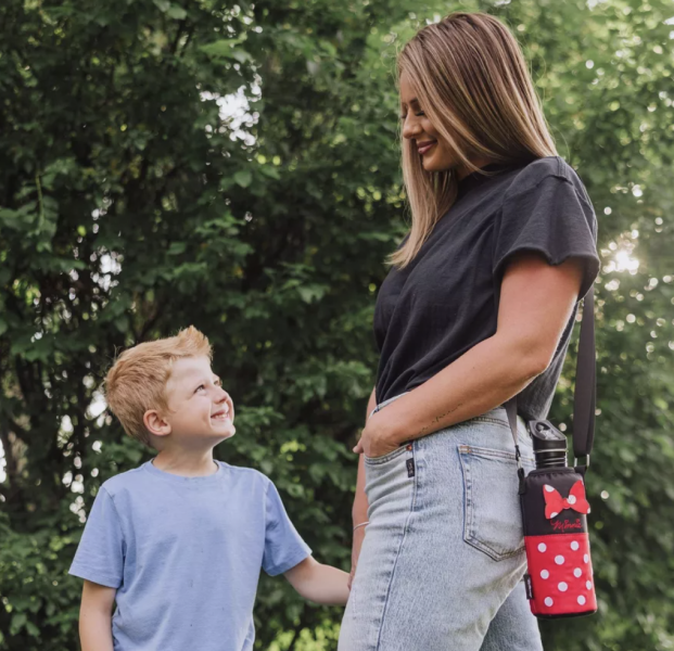 You can’t go wrong with a classic! This 24-ounce stainless steel bottle comes with an insulated cooler tote that is designed to look like Mickey’s shorts!