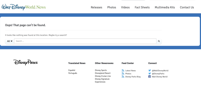 And here’s the “after” screenshot of the same page. Disney has announced things mistakenly before, and this is usually the process in place.