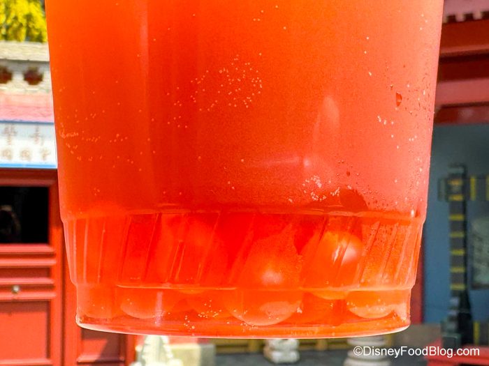 The downside is that this isn’t served on ice, but it’s easy to walk up to the refrigerator in the store, grab a can, check out quickly, and drink it while it’s still cold. It’s located in the back of the shop, which also has a check-out where there is rarely a line. Really, our only complaint is that the boba is a little squishier because it’s been in the liquid longer inside the can, but it’s so nice to be able to grab a quick drink when we’re walking through the China Pavilion.