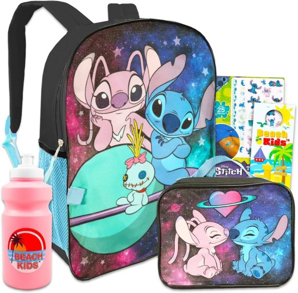 This Stitch and Angel backpack set features everything – backpack, lunchbox, a water bottle, some stickers – your kids could need for a trip to the beach or even – don’t let them hear this part – back-to-school season.