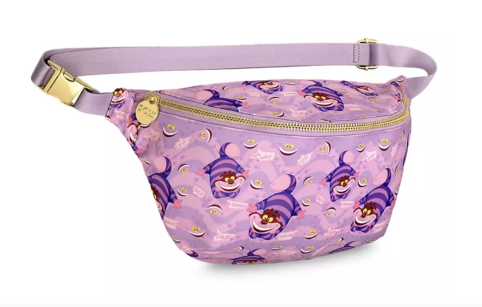 This belt bag features the iconic Cheshire Cat with his wide, cheeky grin! The bag is labeled a “jumbo” belt bag, so it should have plenty of room to store all your essentials. It has a zipper closure and an adjustable waist strap.