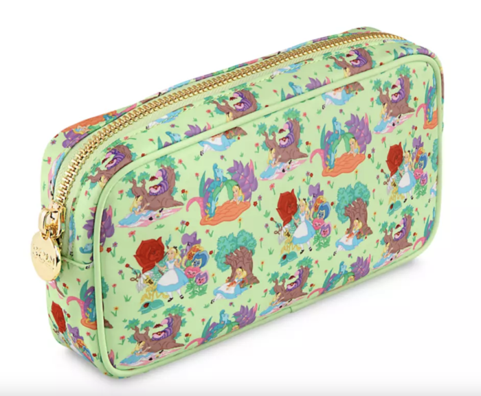 If you’re looking for something a little smaller, check out this pouch! It has different scenes from the movie depicted all over, like Alice meeting the Cheshire Cat and chatty flowers.