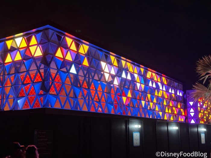 It’s been a project years in the making and while we’ve been tracking the progress of the CommuniCore Hall’s build from the jump, it’s almost time to see the realized dream come to life. We’ve seen EPCOT testing the colorful lights within the geodesic tiles during the day and now we’ve finally caught a glimpse of what they’ll look like at night!