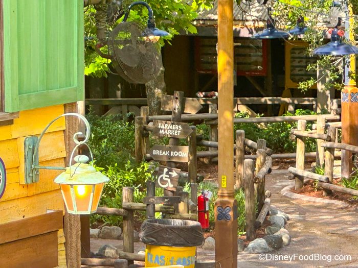 The queue also includes signs for a Farmer’s Market and Break Room. We assume these are for the folks who work for Tiana’s Foods. A sign for wheelchair users is here, too.