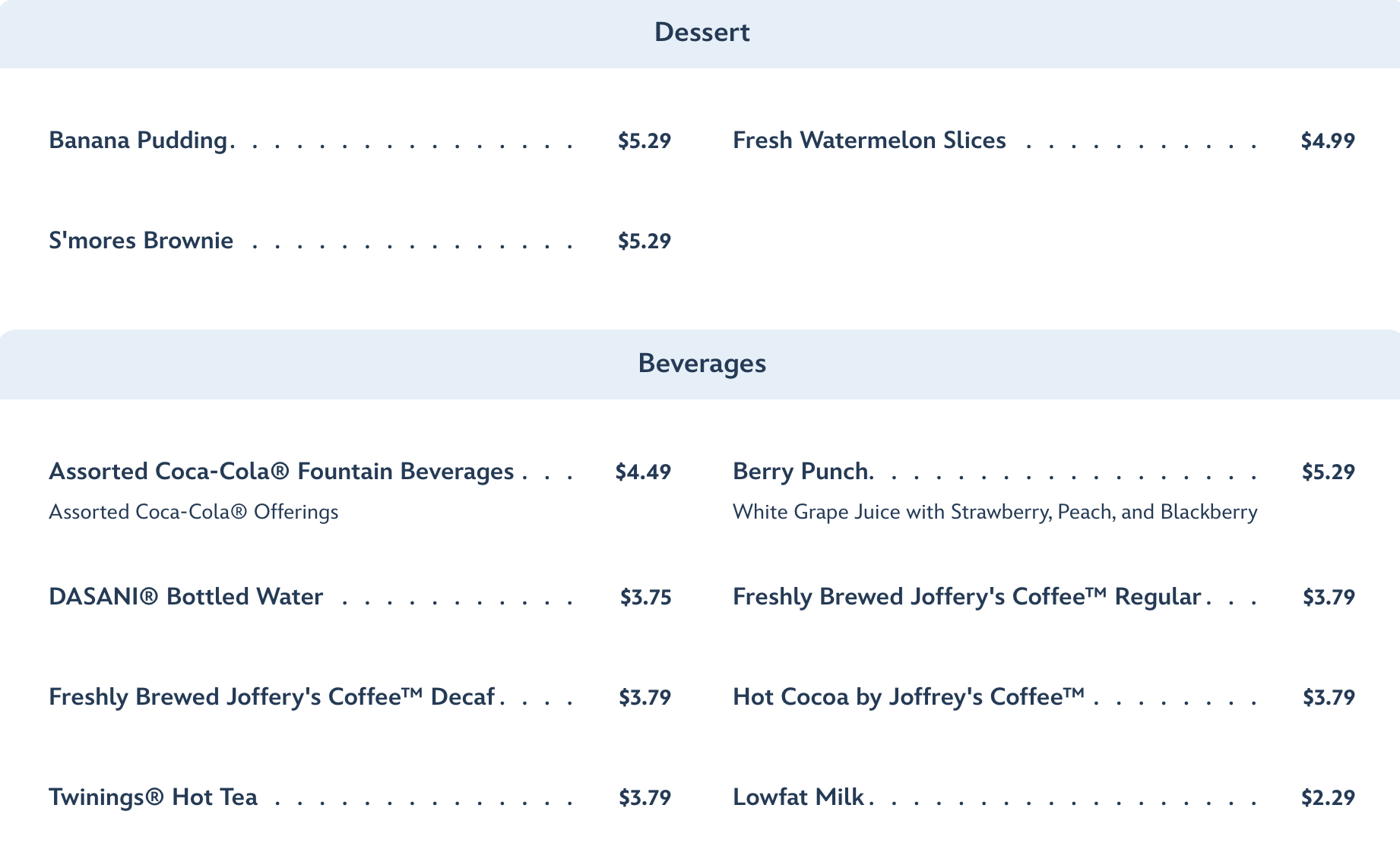 And of course, we’ve got to round it out with dessert! You’ll find barbecue staples like banana pudding, fresh watermelon, or a s’mores brownie.