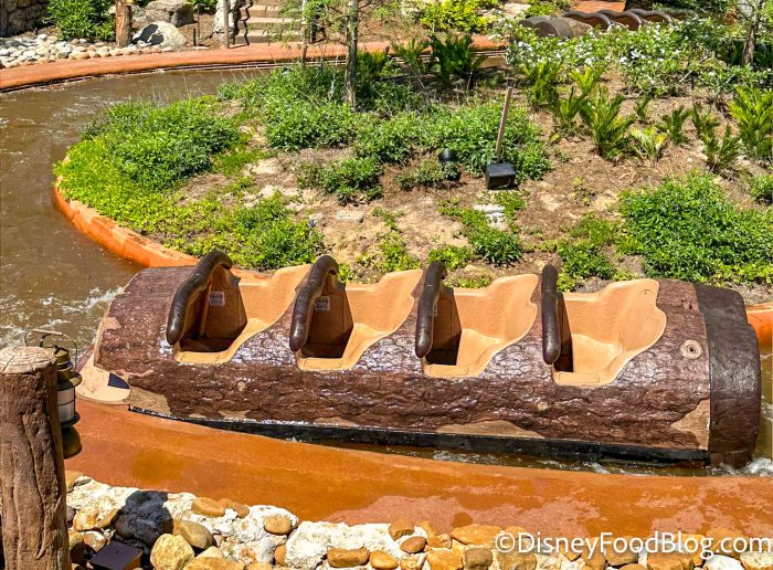 In case you need a reminder, here’s what the old Splash Mountain logs look like. They were made to look like logs with seats carved out, and they had Br’er Rabbit sculptures on the front of them.