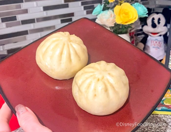 And, y’all — they WERE good! When we cut it in half, we could hardly tell the difference, though it did look like there was less filling in the Wow Bao version than what we’re used to at Satu’li. They were savory, and cheesy, and reminded us of a McDonald’s cheeseburger in the best way. The bao bun itself was fluffy but we did find it to get a bit chewy the longer the buns sat. Overall, though, these are a great option if you can’t make it to Animal Kingdom!