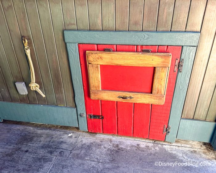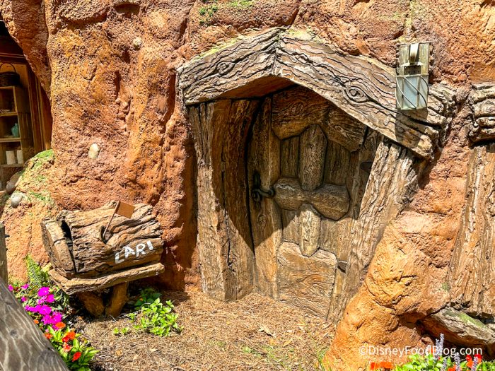 Our next door actually has a theme for it! Located on the side of the new Critter Co-Op gift shop, this door was originally themed to Br’er Rabbit’s home back when Splash Mountain was still around. Now, the mailbox out front has been painted to say “Lari,” which is one of the characters introduced for Tiana’s Bayou Adventure.