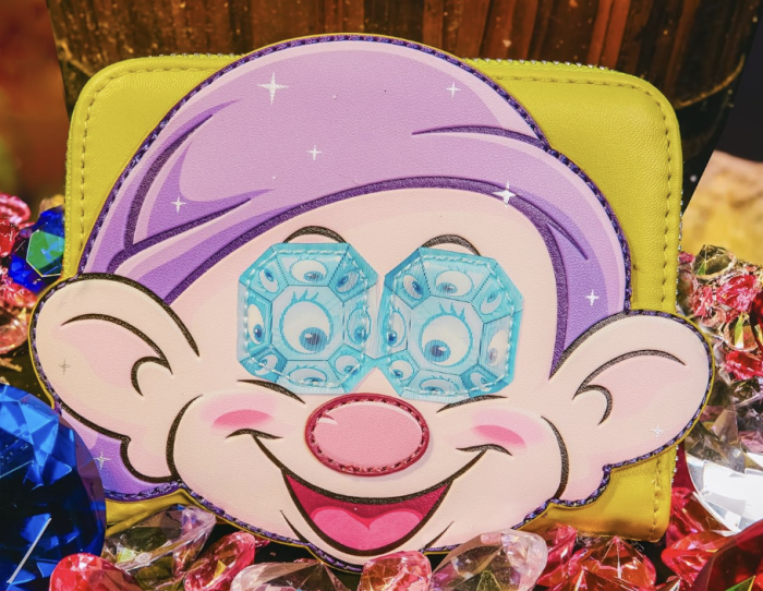 The matching Dopey Gemstone wallet is coming out on July 14th! The wallet has a zipper closures, credit card slots, and a clear ID slot.