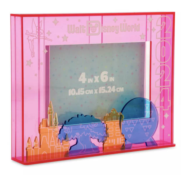 Show off your latest Disney World picture with the 2024 park icons picture frame! It would set perfectly on a desk, nightstand, or living room end table.