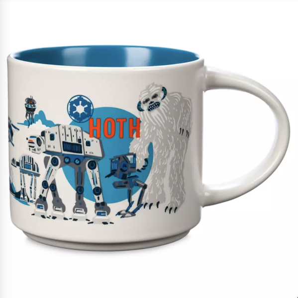 This authentic Starbucks mug, part of their Star Wars Discovery Series, features all of the best known features of the ice planet Hoth from the iconic opening of The Empire Strikes Back.