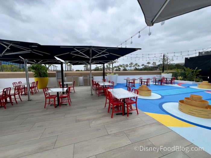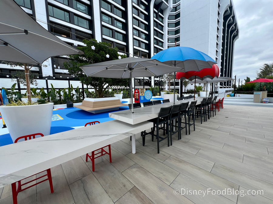 Vibrant, colorful, simple yet classy, and full of good vacation vibes, the dining area around this little bar is plentiful, spacious, and a great spot to get away from the hustle and bustle of Disneyland.