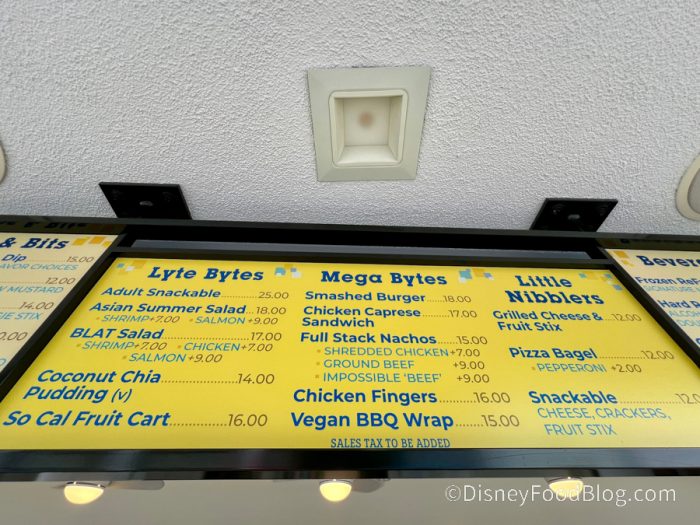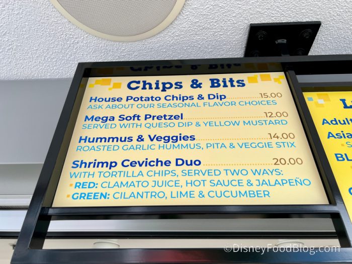 While the bar is near the hotel pool, you don’t need to be staying at Pixar Place to eat here. Speaking of eats, let’s take a look at the menu!