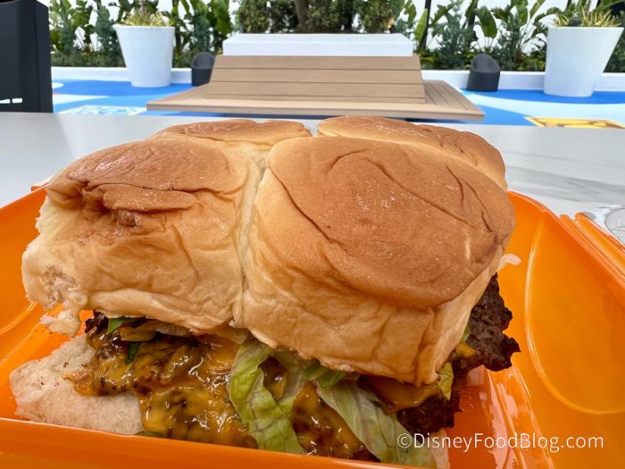 Definitely check out the burger if you visit, and you can’t go wrong with the Mega Soft Pretzel! The pricing is on the higher end, but if you’re a Magic Key Passholder, you do receive a discount here. We will definitely be coming back.