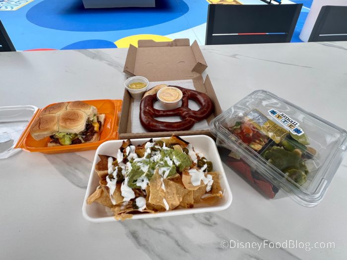 We tried the Mega Soft Pretzel, Shrimp Ceviche Duo, Smashed Burger, and Full Stacked Nachos to get a good feel for the menu.