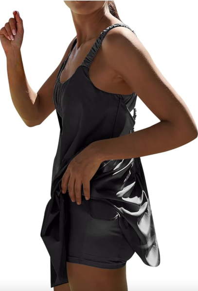 Good news! We found a similar look for much CHEAPER on Amazon! The shorts in this set are also detached, making it a lot easier to change in and out of this set. Plus, it’s always nice to have a spare pair of sporty athletic shorts, right?