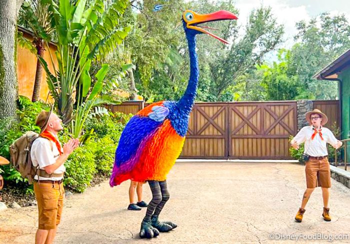 That means you won’t find him on the My Disney Experience app at this time, but keep your eyes out for changes! During our visit, Dug and Kevin took turns roaming Discovery Island. You can see Kevin’s set times on the My Disney Experience app. While Dug’s official times aren’t currently listed, you can use a little process of elimination to guesstimate when Dug will be out by looking to see when Kevin appears.