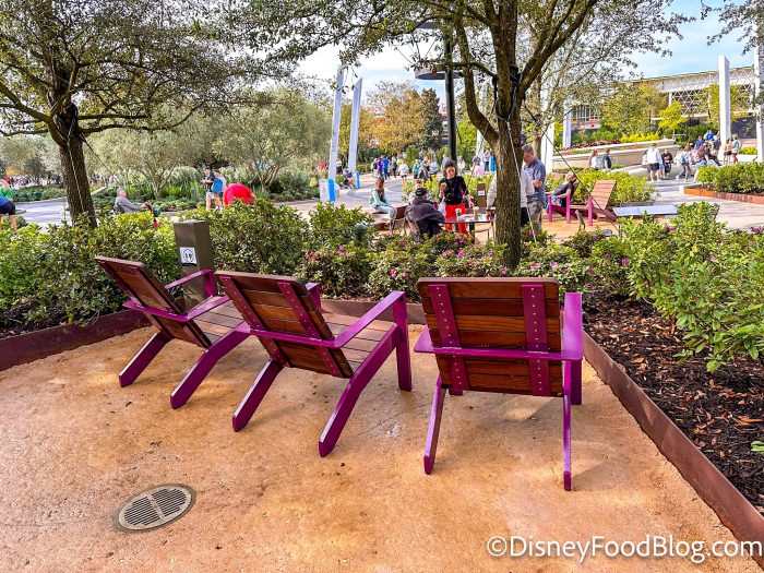 Here’s our hot take on this spot — although the Passholder lounge is nice (and features a few complimentary snacks) it’s mere steps away from this spot, and THIS one doesn’t have a line to get in. Plus, it’s also accessible to anyone visiting EPCOT (not just passholders) and is a permanent fixture that won’t be running on a limited-time engagement so you won’t have to find a new spot to chill so quickly like the lounge.