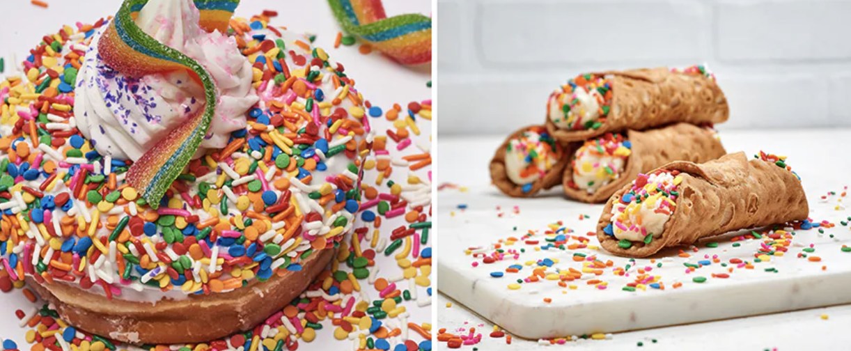 - Pride N’ Candy Cannoli: Cannoli shells filled with ricotta cheese, cream cheese, powdered sugar, rainbow candy chips, and cotton candy flavoring