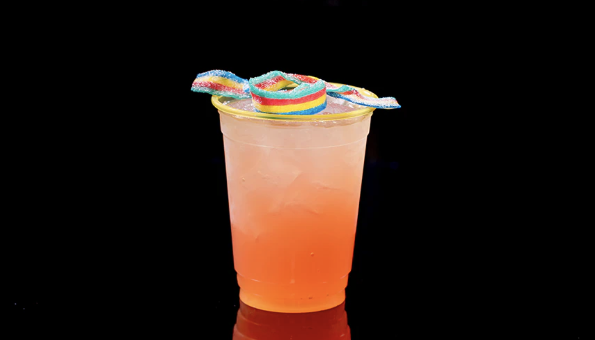 - Strawberry Vodka Cocktail: Vodka, strawberry purée and soda water topped with a rainbow candy belt (New)