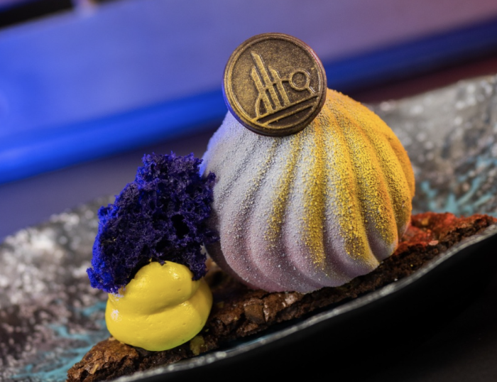 Disney has announced that two new eats are coming to Docking Bay 7 in Hollywood Studios on June 3rd! The first is the Black Spire Mousse, a new dessert that is made of white chocolate jogan fruit mousse atop a brownie pistachio brittle served with blue milk sauce, pineapple cream, and hibiscus sponge topped with a chocolate Black Spire coin.