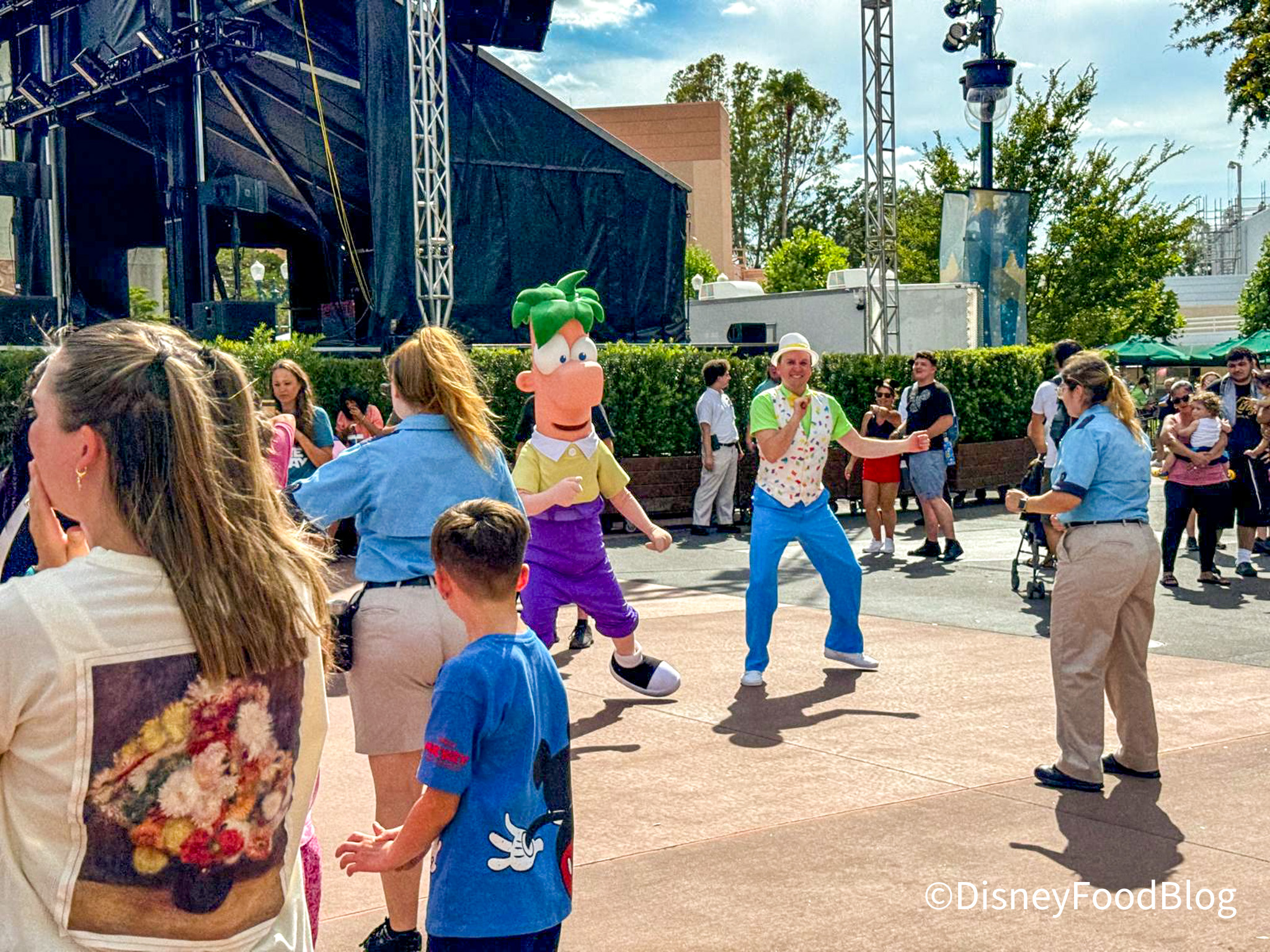 Since this stage is so giant and takes up so much space and therefore takes away some entertainment, it appears that Disney has made up for it another way — with a PHINEAS AND FERB DANCE PARTY!!