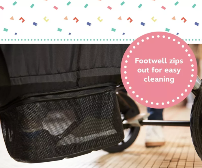 Remember how we said we like a stroller that holds a LOT (besides your child, that is)? Well, this Disney-themed stroller has it ALL. It’s got a telescoping, reversible handle, a special spot for shoes, a detachable storage basket, and even a removable, dishwasher-safe tray with two cup holders. Now, those are some sweet features!