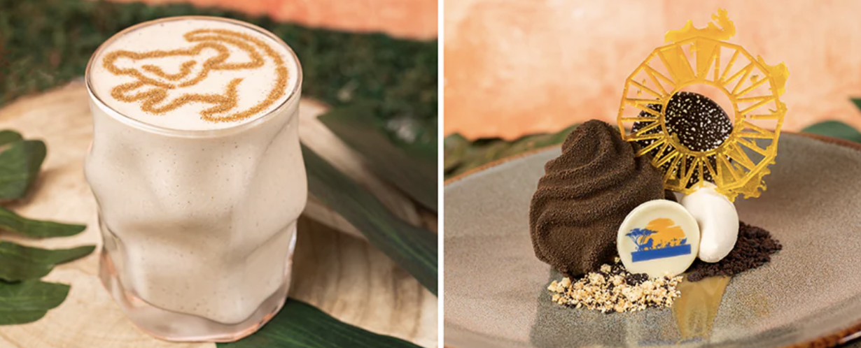 At Tiffin’s Restaurant, you can get the Rafiki’s Squash Banana, which is a shake blended with squash bananas, baobab fruit, vanilla, cinnamon, and cardamom. Yum! Also, the “Remember Who You Are” The Lion King 30th Anniversary Dessert is a Kenyan coffee mousse is filled with caramelized bananas, chai chantilly, banana-caramel sauce, chocolate-coffee crumble, chocolate decoration, and sugar sun.