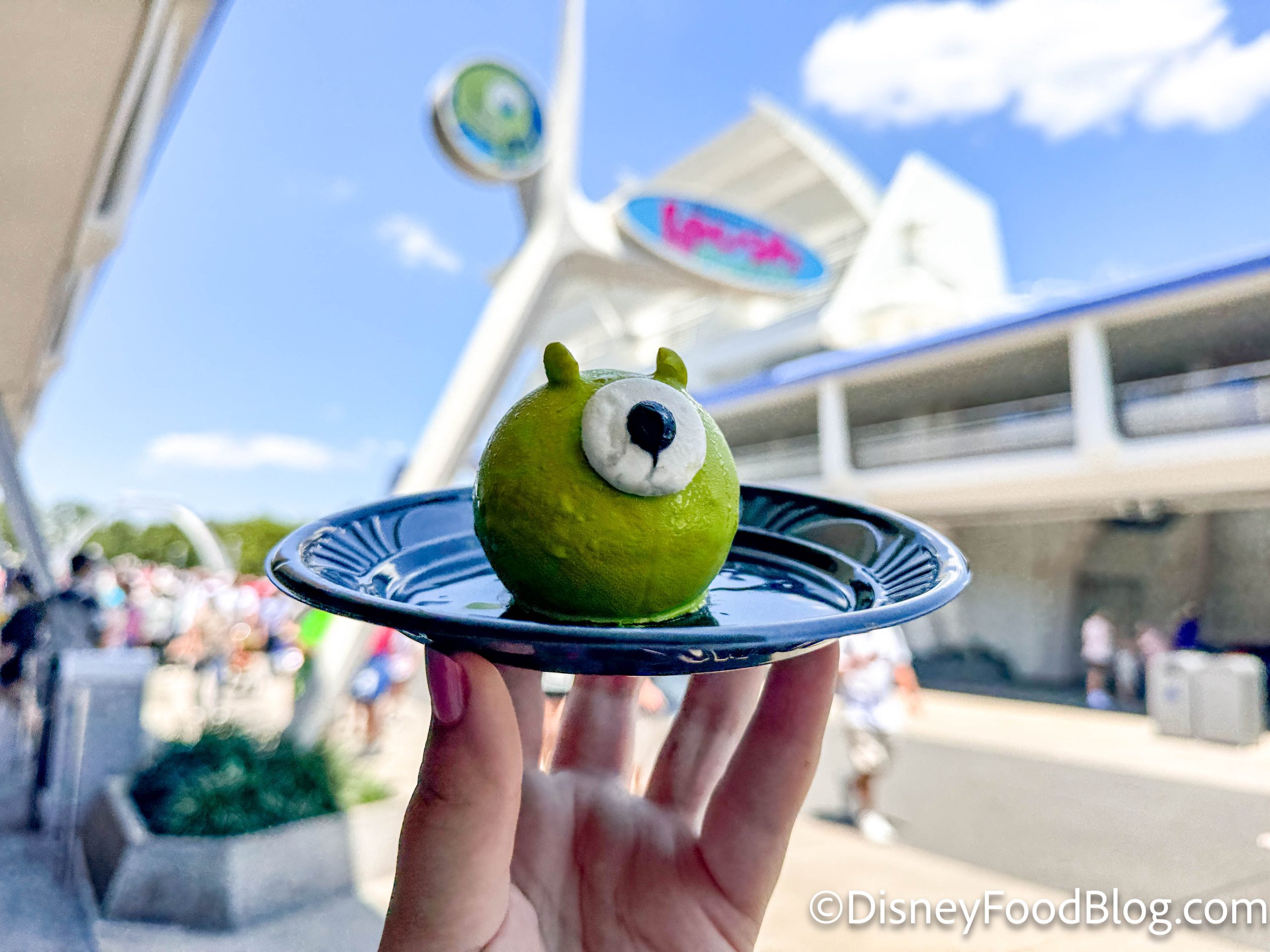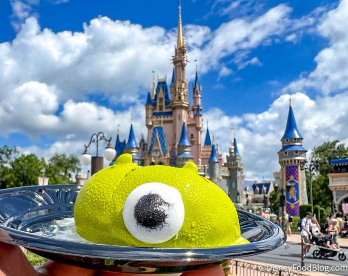 Last summer, The Lunching Pad introduced a Mike Wazowski Cake for $8.29. It’s an orange blossom-mango mousse cake with a candy eye. And when we first got one, it was a bit of a melty disaster.