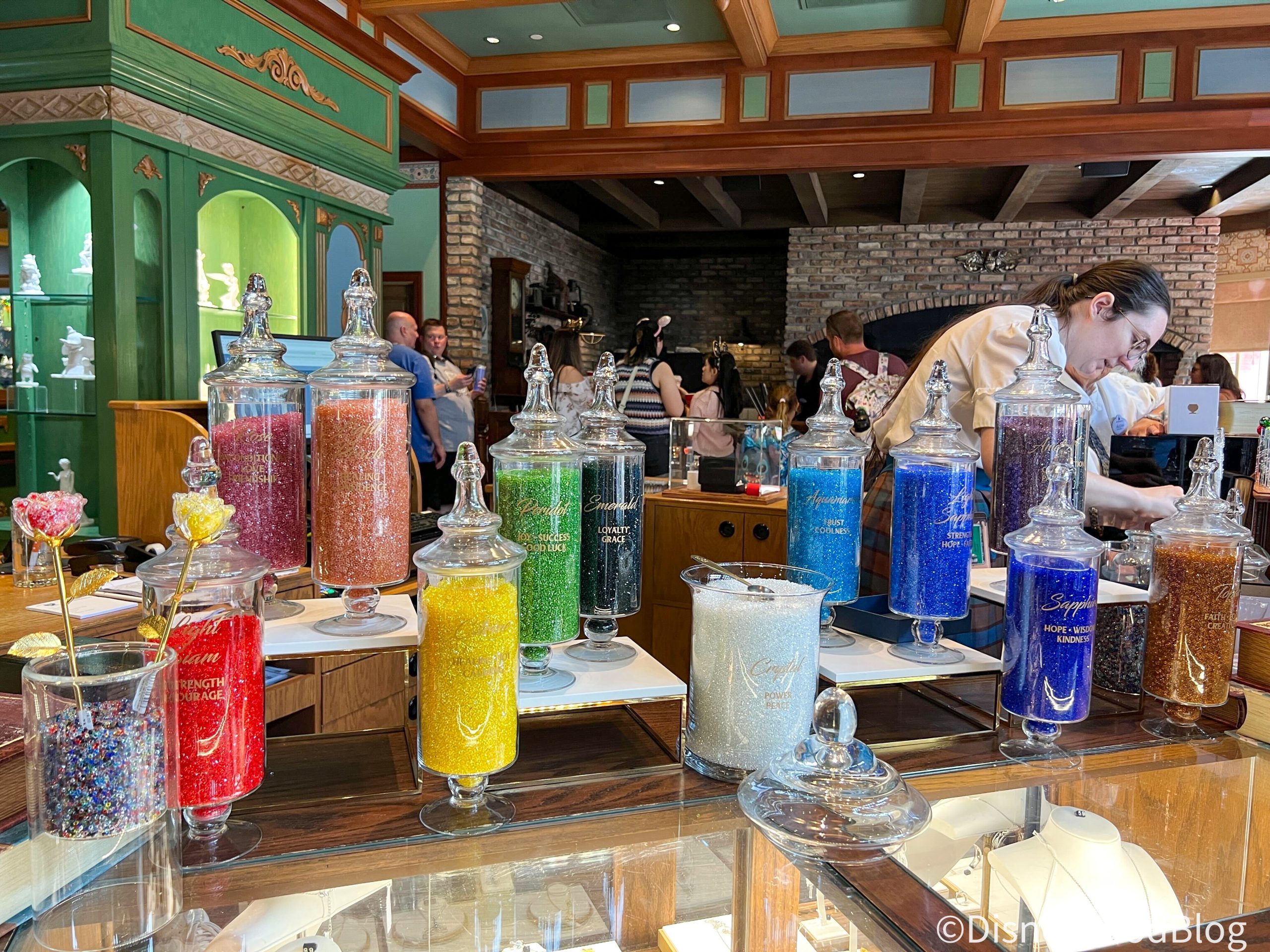 One of the fun things you can do here is make a wish on some “pixie dust” which are beads up crystals that you can then add for safekeeping into one of the various options made for keeping wishes. This activity is at both the Magic Kingdom and Disney Springs locations of Crystal Arts.