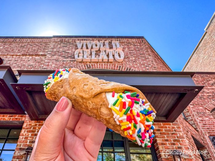 Today we are grabbing the Cake Batter Cannoli from Vivoli il Gelato. The cannoli is filled with sweet cream of ricotta and cake batter topped with rainbow sprinkles. You can grab this treat for $7.75. We have seen this cannoli at Vivoli il Gelato before, but it has been a bit since we have seen it (the last time was in 2021.) This cannoli is here for a limited time, and you can only get it until July 31st.