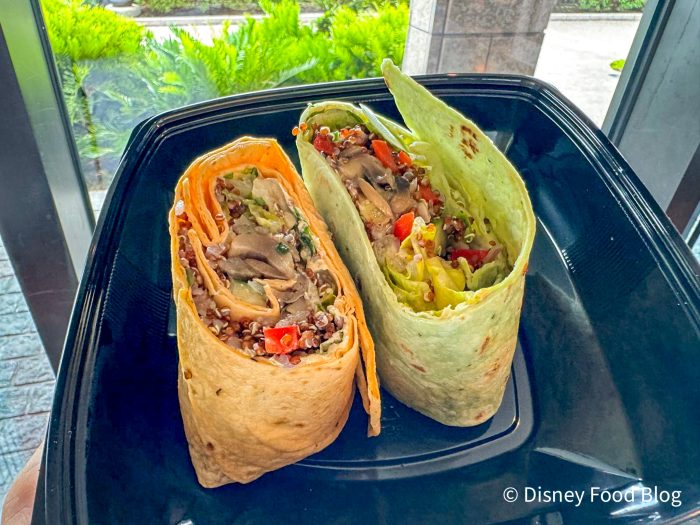 The wrap’s contents are super fresh and tasty. The lettuce is crispy, and the flavorful quinoa is on the Grilled Vegetable Skewer that we love. The downside is that it does not have as much flavor as the skewer does.