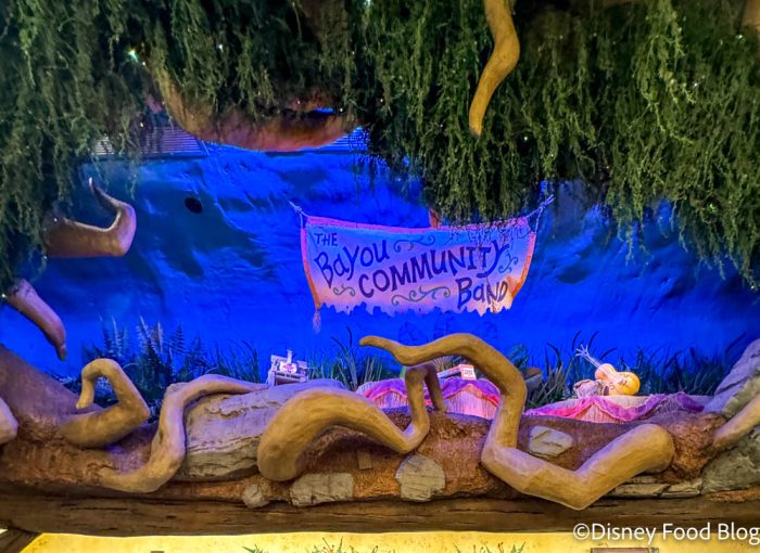 One of the first things you’ll notice in the store is this big Bayou Community Band stage that’s located above the merchandise shelves. (This is where the Splash Mountain critters’ house set-ups used to be.)
