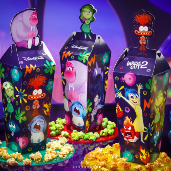 Inside Out themed Popcorn Scoops in garlic, wasabi, and hot jalapeño flavors at Hong Kong Disneyland (Available June 9 through September 1)