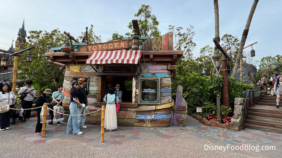 The new Roast Beef Popcorn is available from the Popcorn Wagon – – which is designed to look like “a boat pieced together from colorful slabs of old wood” – – in the Peter Pan’s Neverland subsection of Fantasy Springs. It’s also available in Tokyo DisneySea’s American Waterfront area.