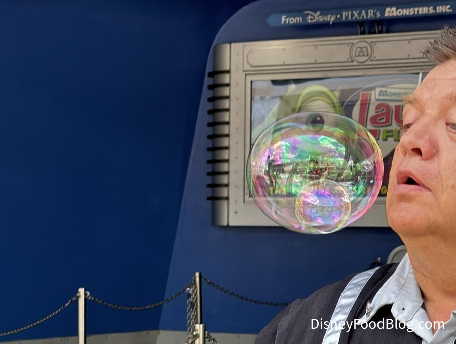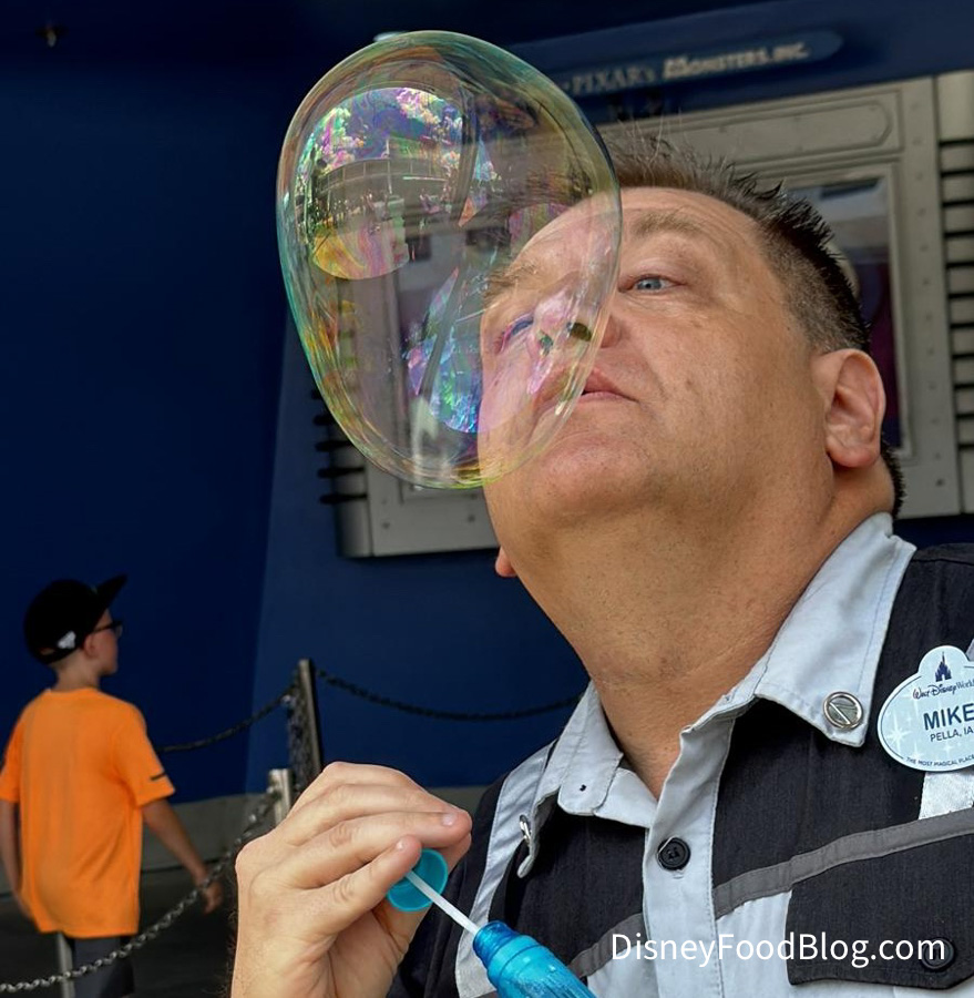 During a stroll through Tomorrowland, a member of our team ran into Cast Member Mike doing some wildly impressive bubble tricks.