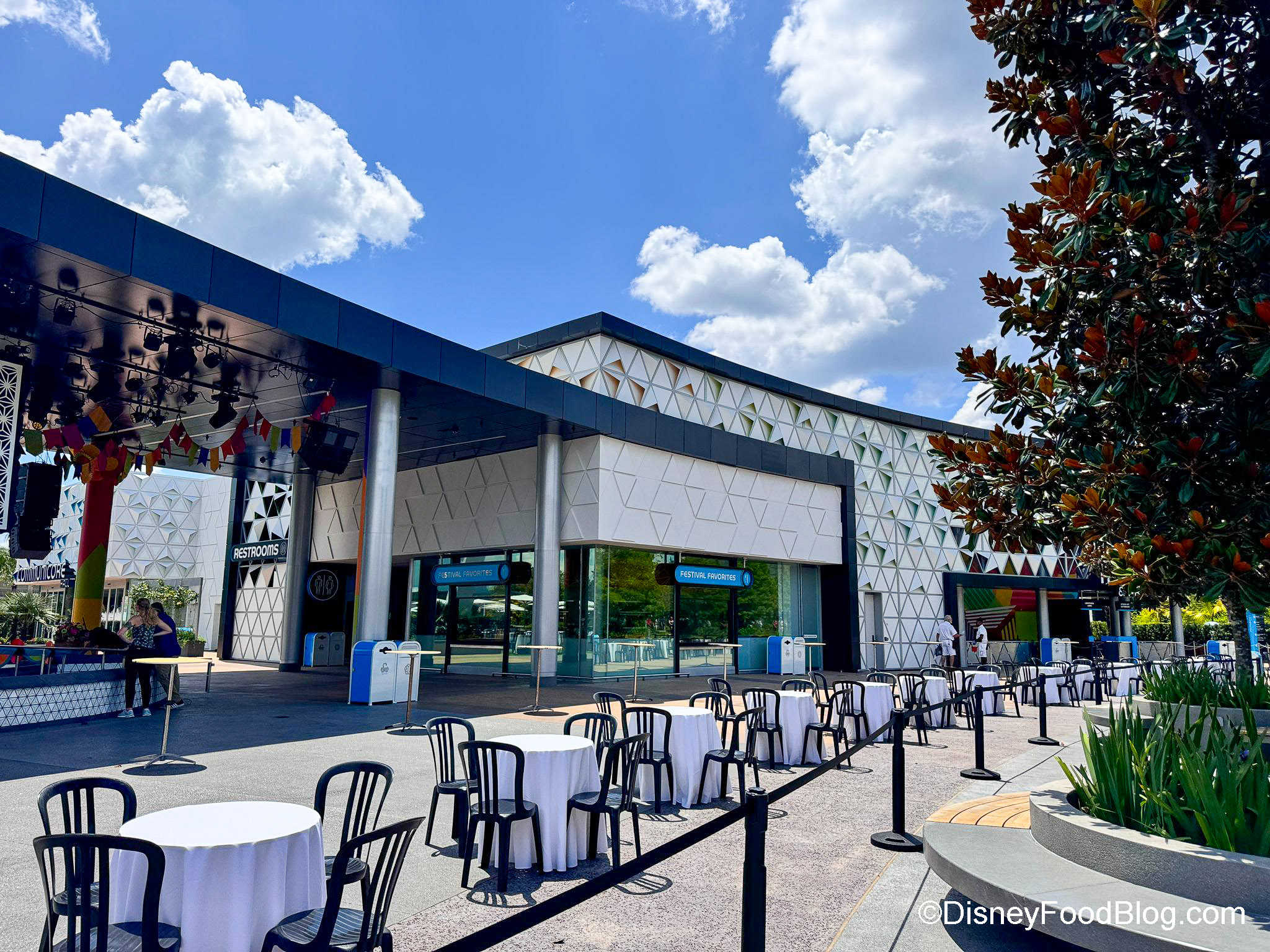 We also recently spotted a sign that says “Festival Favorites” on one side of CommuniCore Hall, where Cast Members teased a potential food booth. However, Disney has not yet confirmed exactly what this is.