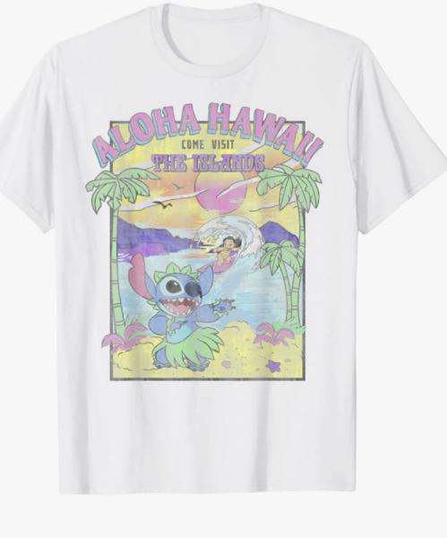 If you are looking for a shirt to wear to ‘Ohana, Aulani, or even just out and about, this Lilo and Stitch shirt gives off retro vacation vibes. We love the distressed look of the shirt, it makes it look worn in and loved. You can even choose from a variety of shirt colors!