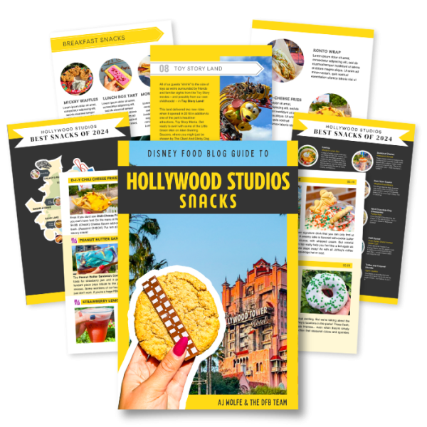 WE KNOW – there are SO many great snacks at Disney World! How do you choose (we don’t want to choose but will blow our budget on Day 1 otherwise)? We’ve got you covered! We have reviewed nearly EVERY snack available at Disney World, and we’ve written a series of DFB Guides about them! Check out our DFB Guide to Walt Disney World Dining + Snacks Bundle for all the details you need to plan your snackin’ and spending. You can even download them to your smartphone – it’ll be like we’re right there with you in the parks!