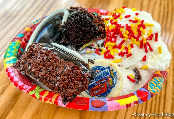 There are a bunch of new treats in Hollywood Studios, like the Frazzled Float (a POG juice float!), The Incredibles Chocolate Cake, Lightning McQueen Spare Tire Donut, and more. All of them are Pixar-themed, and that’s the case with this new Annual Passholder-exclusive treat as well!