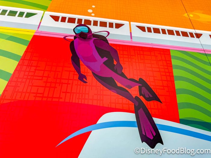 Right next door to The Land Pavilion is The Seas Pavilion, and it was represented in the stunning mural by this scuba diver! We’ve spent many hours watching the scuba divers inside the giant aquarium at The Seas, so this is a fitting tribute.