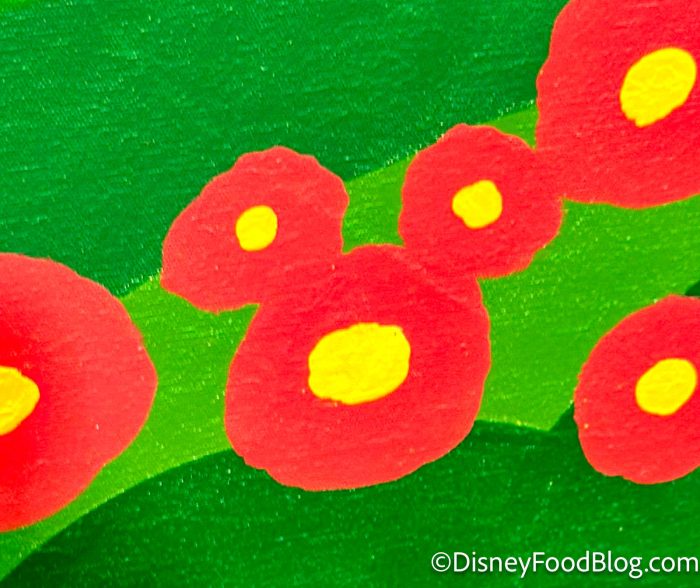 And last but not least, we’ve got to show off this hidden Mickey we found in the meet and greet room! One of the walls is covered with beautiful floral artwork, and you’ll spot Mickey tucked away inside.