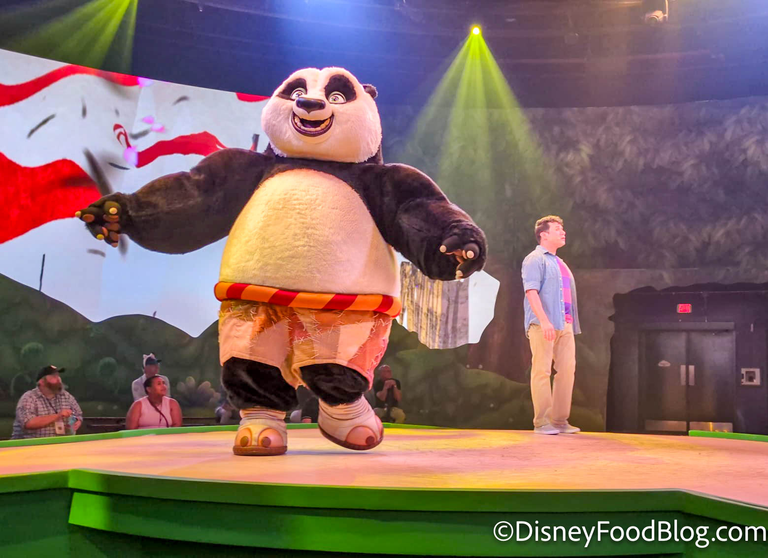 This area is also home to ‘Po Live!’ where you can interact with Po as he teaches you some kung-fu moves and tips to cook the best stir-fry (all the things a dragon warrior needs to know). This show reminded us a lot of Turtle Talk With Crush in EPCOT!